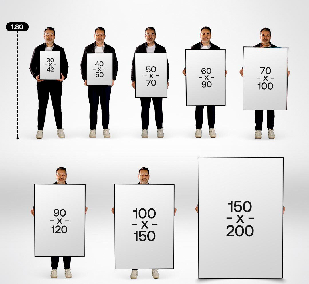 40 x 60 cm, 50 x 75 cm, 60x90 cm